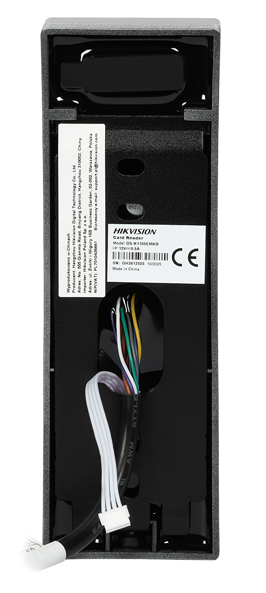 DS-K1105EMKB to zewnętrzny czytnik RFID z klawiaturą numeryczną, który obsługuje tagi Mifare 13,56 MHz oraz Unique/EM 125 kHz.