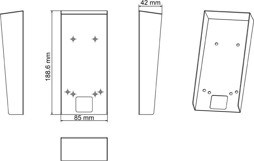 DS‑KAB502‑S1 to daszek przeznaczony do montażu natynkowego terminali z serii DS‑K1T502. Zapewnia dodatkową ochronę urządzenia przed słońcem, deszczem, śniegiem oraz innymi czynnikami atmosferycznymi, dzięki czemu zwiększa trwałość i niezawodność pracy terminala w warunkach zewnętrznych. Konstrukcja wykonana ze stali elektrolitycznie ocynkowanej (SECC) gwarantuje wysoką odporność na korozję i uszkodzenia mechaniczne. Solidne wykonanie oraz prosty montaż sprawiają, że daszek stanowi praktyczne i trwałe uzupełnienie instalacji terminali kontroli dostępu.
