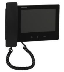 DS-KH7300EY-WTHE2 to nowoczesny monitor dotykowy marki Hikvision wraz z słuchawką, przeznaczony do pracy w systemie wideodomofonowym 2-Wire HD z serii EY.
