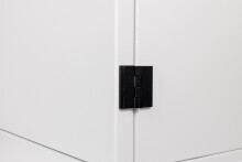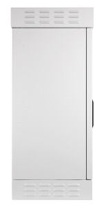 Drzwi szafy osadzone na stalowych zawiasach wewnętrznych, zamykane trzypunktowym systemem zasuwowym, realizowanym poza komorą szafy. Klamka z zamkiem bębenkowym, możliwość zmiany wkładki bębenkowej we własnym zakresie. Do wprowadzenia okablowania do szafy zastosowano przepust kablowy o klasie szczelności IP66. Wprowadzenie okablowanie do wewnątrz ułatwia odkręcana płyta podłogowa. W celu zachowania szczelności na styku płyty i podłogi wylana jest uszczelka.
