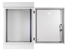 Szafa zewnętrzna aluminiowa 15U RACK 19'' o wymiarach 600x400 mm montowana na fundament stalowy lub aluminiowy. Szafa z ochroną szczelności IP54.